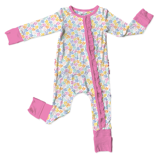 Laree + Co Korrie Dots Bamboo Ruffle Triple-Zip Convertible Footie