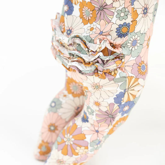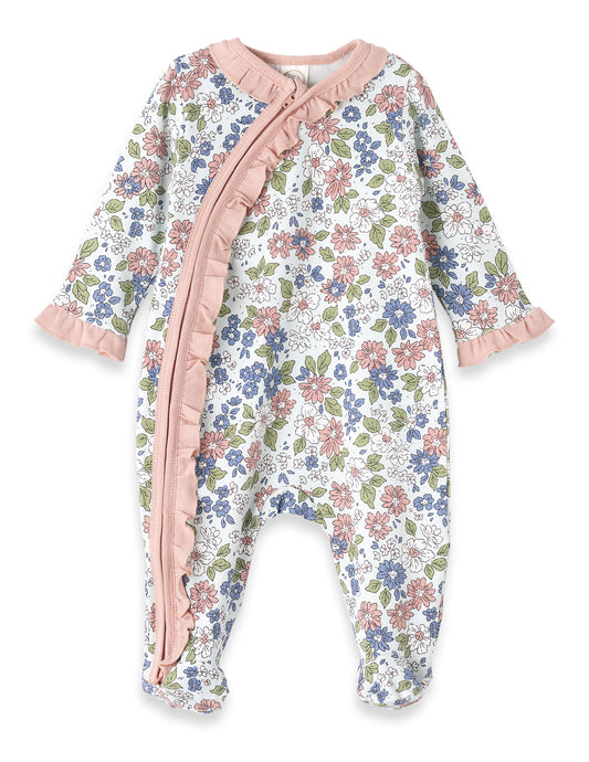 Laree + Co Korrie Floral Bamboo Ruffle Triple-Zip Convertible Footie