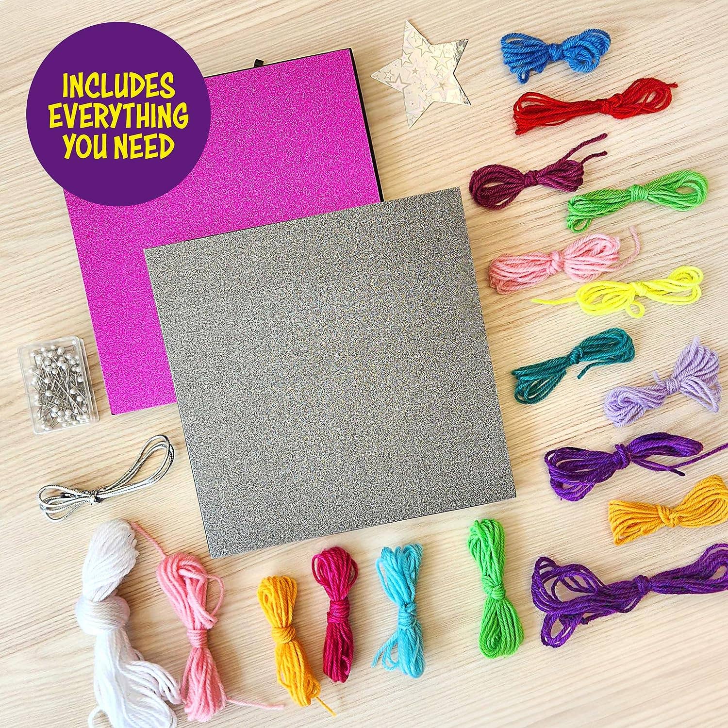 EVERYTHING AT YOUR FINGERTIPS: Our comprehensive kit includes foam boards, colored cardboard backgrounds, white cardboard backings, pearl-headed pins, patterned wax paper, color string, silver string, metallic star, felt shapes, and more! Jump right into crafting with no missing pieces.