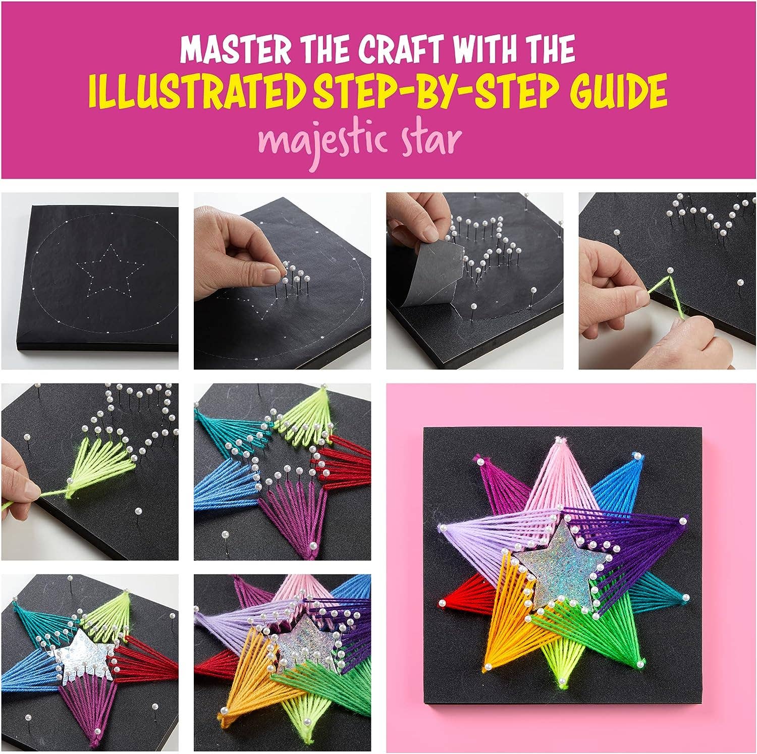 UNLEASH YOUR INNER ARTIST: Dive into the mesmerizing world of 3D string art with our easy-to-follow guide! Craft a Majestic Star and Magical Unicorn to display your artistic flair. Work creatively, colorfully, and carefully to showcase a masterpiece.