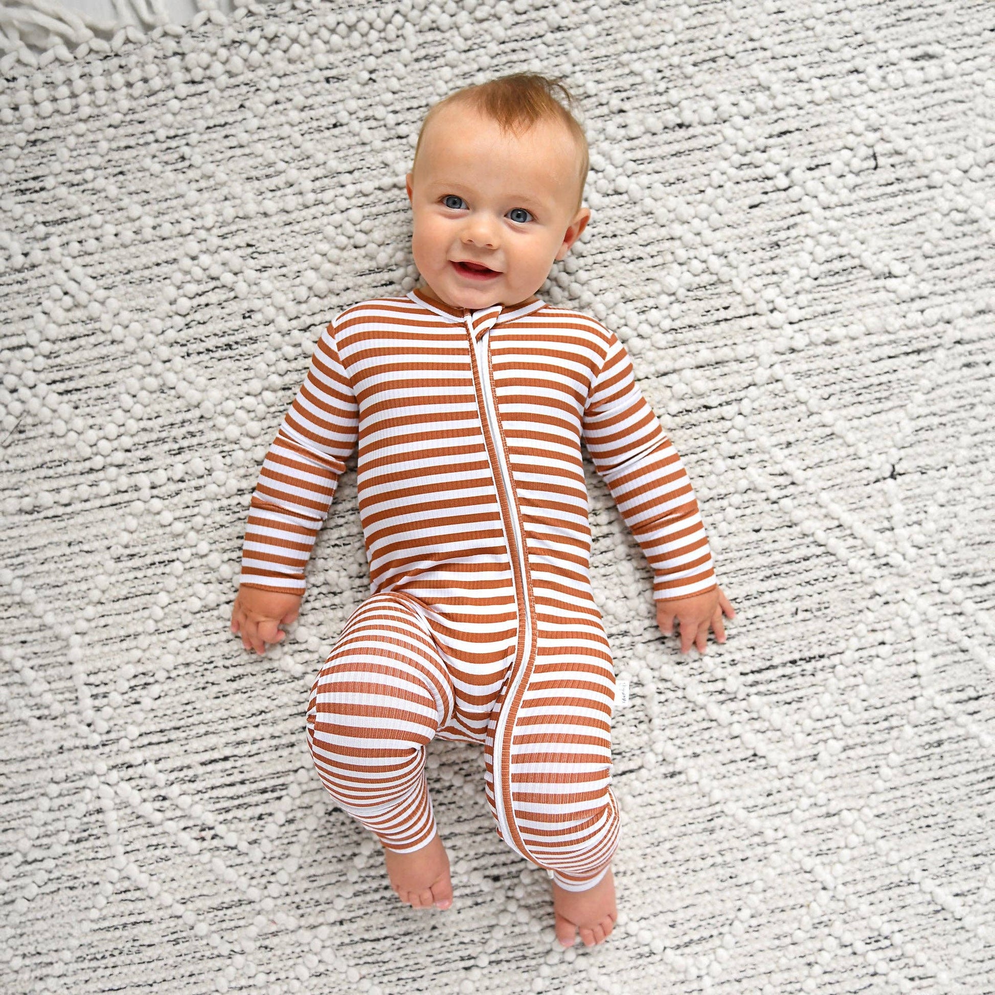 This zip one piece is super soft and comfortable. Featuring a zipper that runs from the top of the outfit to the ankle. Our favorite part about this outfit is that the zipper is 2 way! Making for super easy diaper changes without having to remove the whole outfit. The fabric we used is super stretchy and breathable, made from bamboo viscose, wait until you feel how soft it is! These run about one size big leaving room to grow but are meant to have a slim fitted look to them. Mitten cuff on arm keeps baby from scratching, if needed. Fold-over foot at ankle can be used on chilly days when you forgot the socks! Please note: newborn size is footed. The foot grips are designed to provide enhanced traction for babies and toddlers. To ensure the longevity and effectiveness of the foot grips, it is essential to follow proper washing and drying instructions. Improper care may lead to deterioration of the material and reduce the grip’s effectiveness over time.