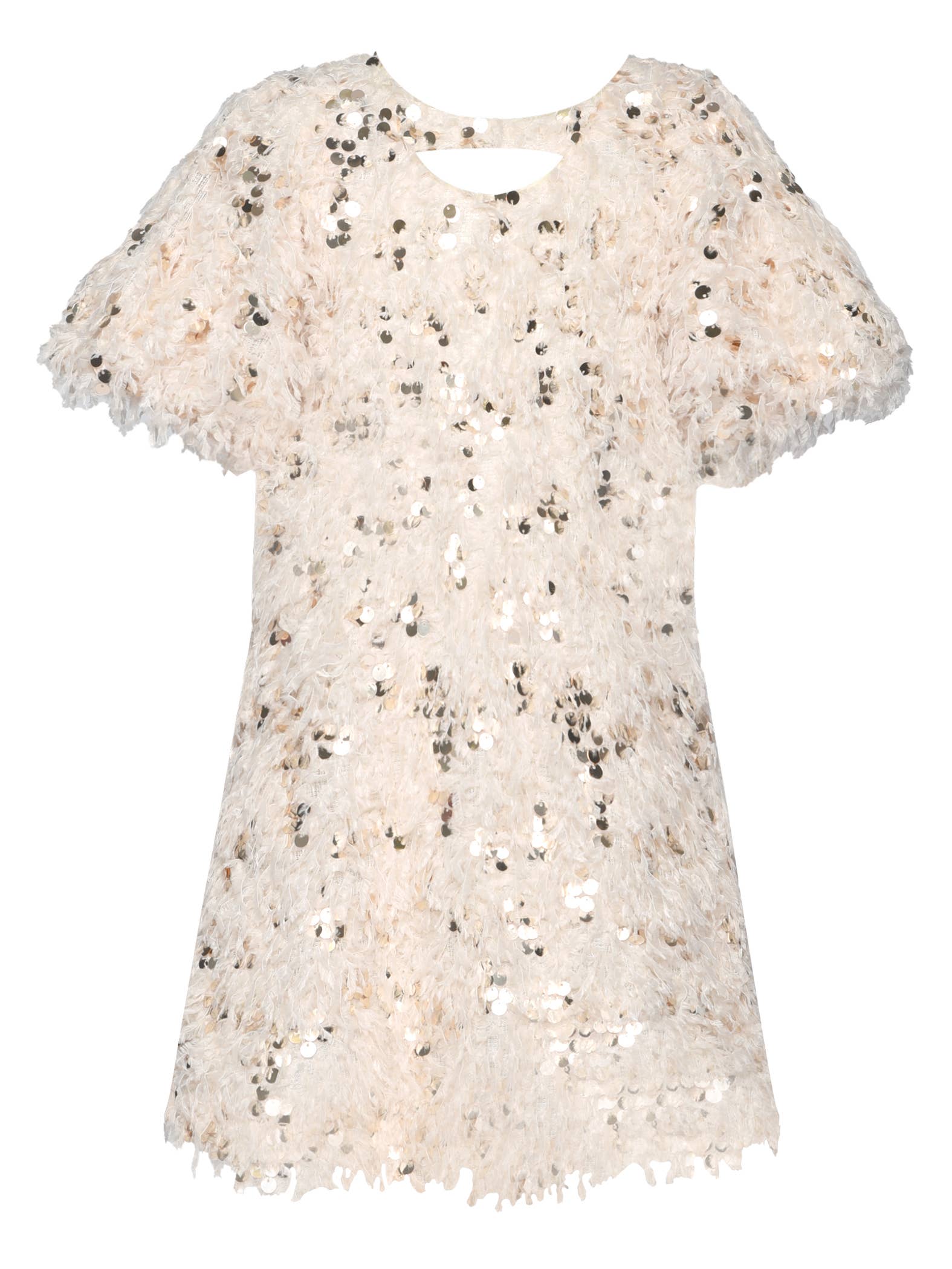 Make her holiday celebrations extra special with our **Faux Feather Sequin Party Dress**! Designed for sparkle and elegance, this dress features shimmering sequins that catch the light beautifully. The delicate faux feather trim adds a touch of glamour, while the chic chest keyhole detail and exposed back zipper create a stylish, modern look. Perfect for holiday parties, special occasions, and festive photos, this dress is made for making memories!