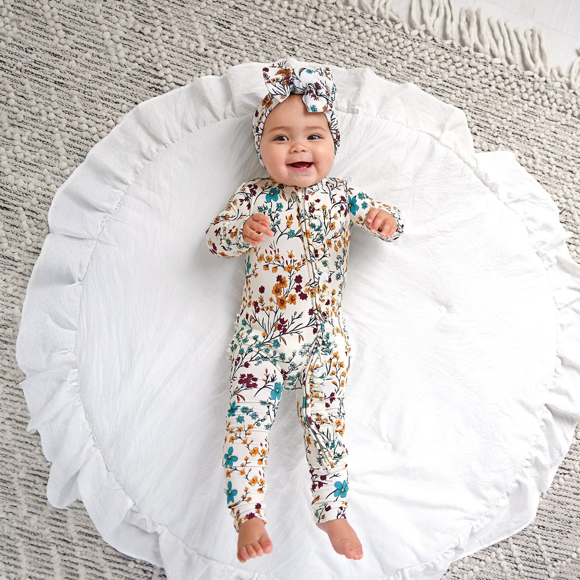 This zip one piece is super soft and comfortable. Featuring a zipper that runs from the top of the outfit to the ankle. Our favorite part about this outfit is that the zipper is 2 way! Making for super easy diaper changes without having to remove the whole outfit. The fabric we used is super stretchy and breathable, made from bamboo viscose, wait until you feel how soft it is! Mitten cuff on arm keeps baby from scratching, if needed. Fold-over foot at ankle can be used on chilly days when you forgot the socks!
