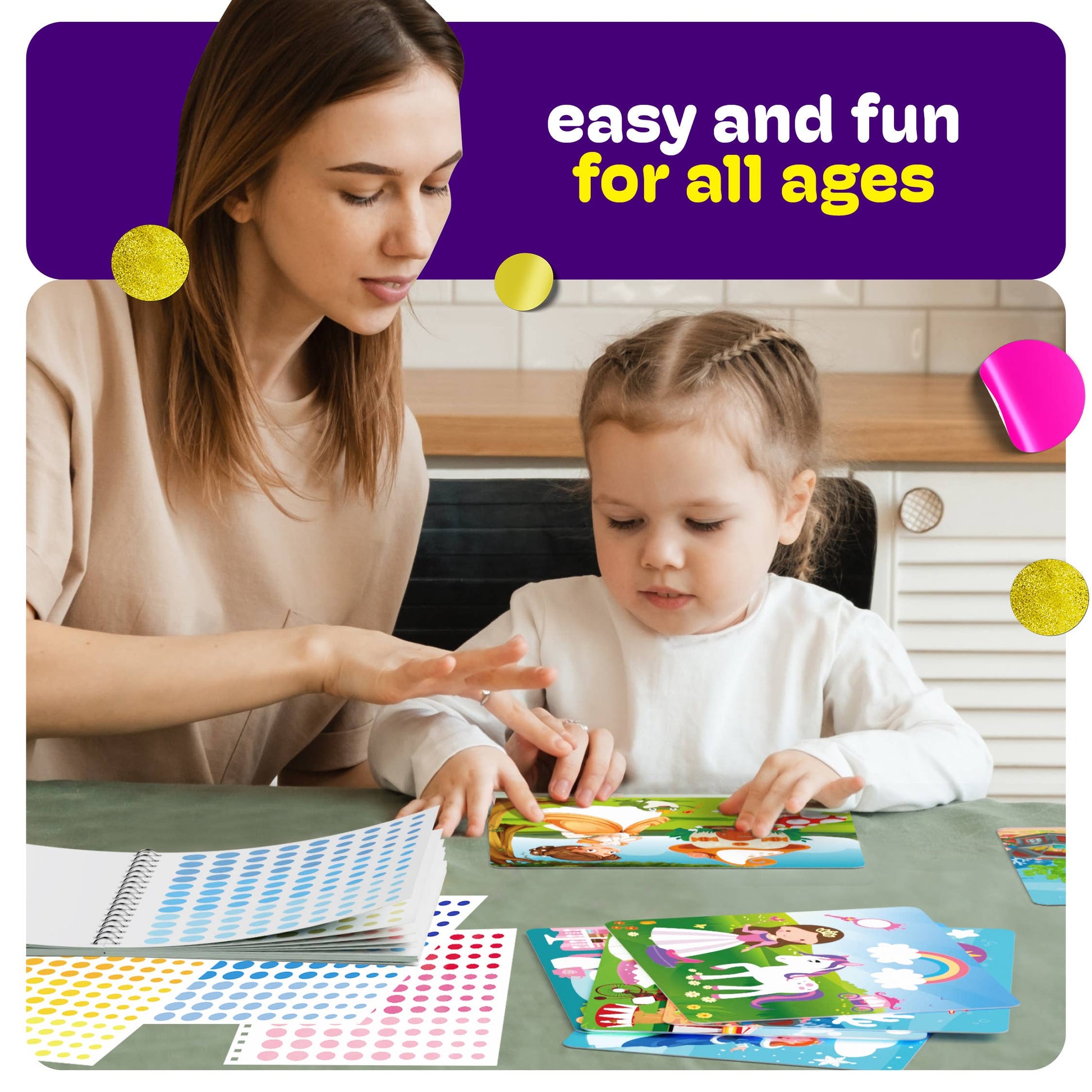A FUN ACTIVITY FOR ALL: Simply peel and stick the dot stickers to bring the illustrations to life. The simple design process makes it accessible for all ages, even for very young children, ensuring everyone can join in on the fun!