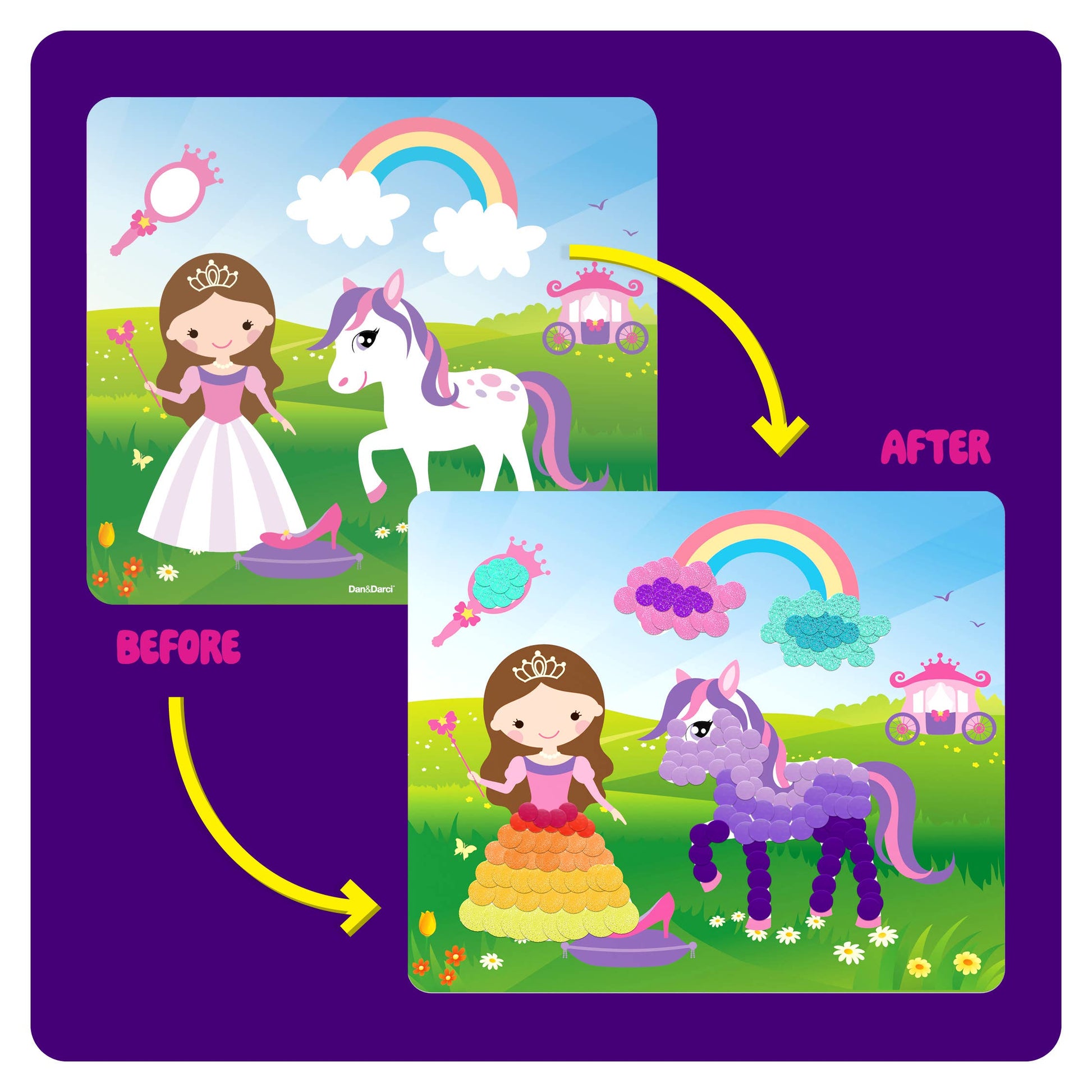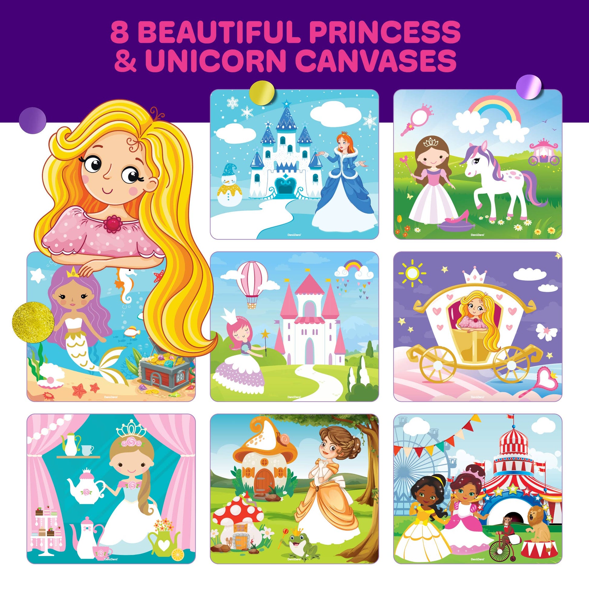 ENDLESS CREATIVE FUN: Dive into a magical world with the Dan&Darci Princess & Unicorns Dot Sticker Art Kit! This fun sticker craft kit lets kids design enchanting masterpieces using 3000+ colorful dot stickers on beautiful princess and unicorn canvases.